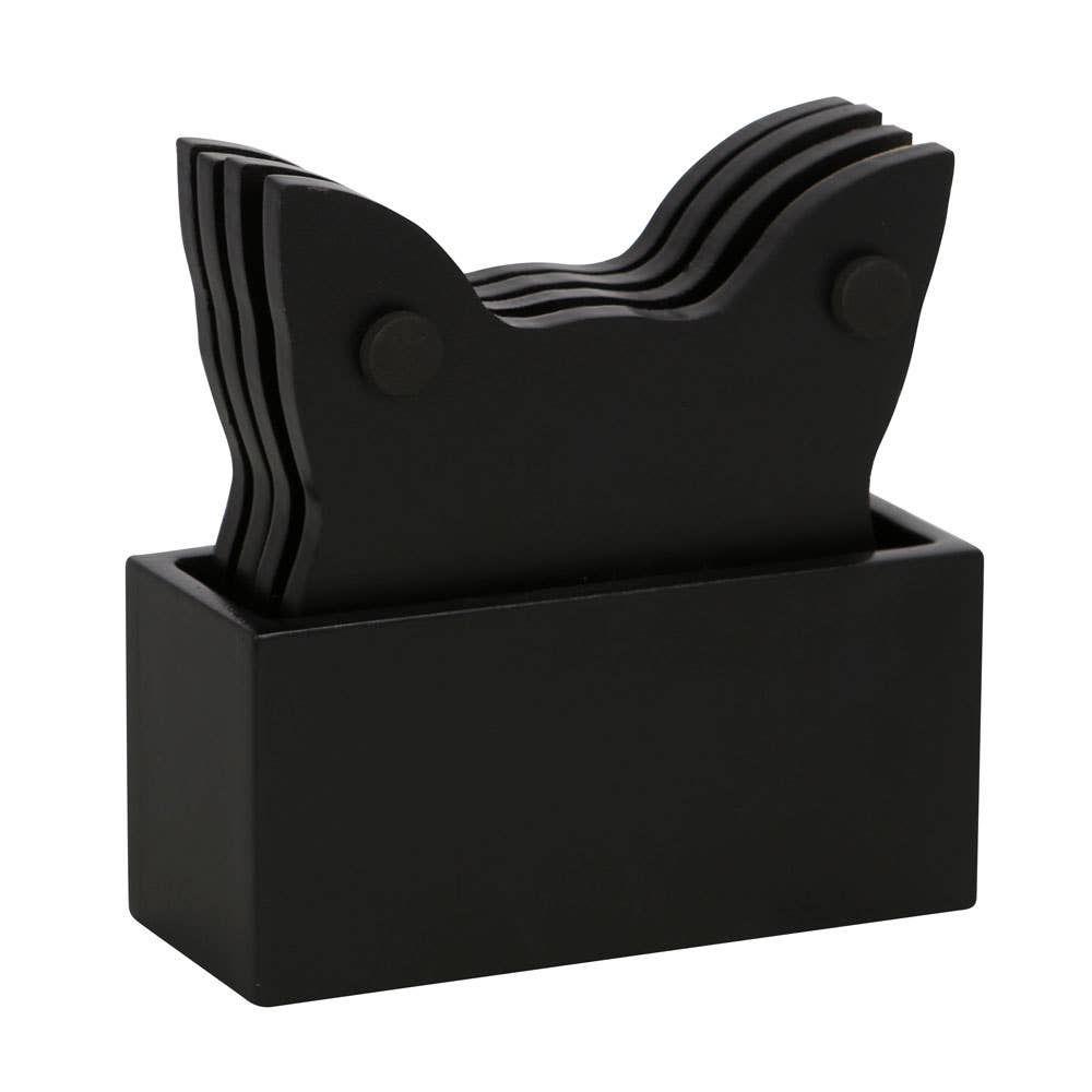 This set of 4 coasters comes in the shape of a mystical cat face and includes a matching holder with crescent moon accents. Designed by Something Different Wholesale and part of the Mystic Mog range of mystical black cat gifts and home decor.